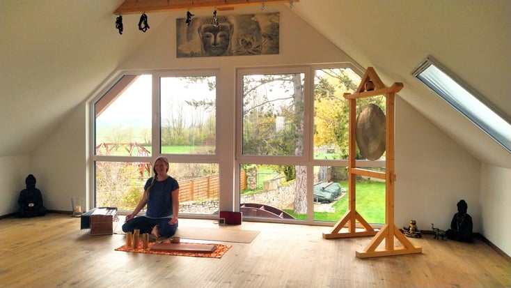 During gentle Hatha + Yin Yoga units, which Bhavani tailors to the needs of her participants, you flow into the sounds such as the Indian harmonium, wind chimes, singing bowls, polychord, optionally gong, tampura and guitar.